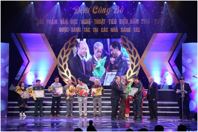 Nhà văn Hữu Thỉnh trao bằng khen cho các văn nghệ sỹ