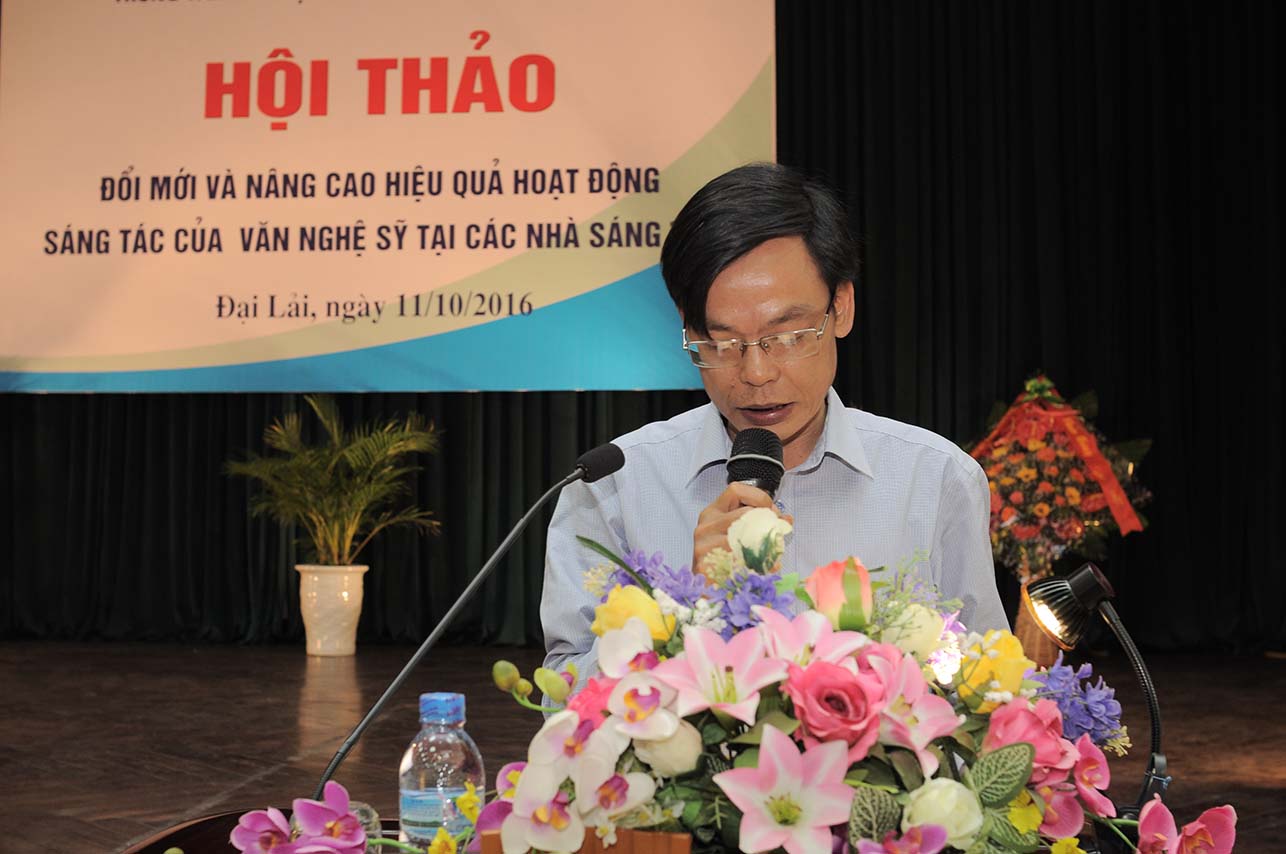 Nhà văn Nguyễn Quang Thiều, Phó chủ tịch Hội Nhà văn Việt Nam phát biểu tại Hội thảo