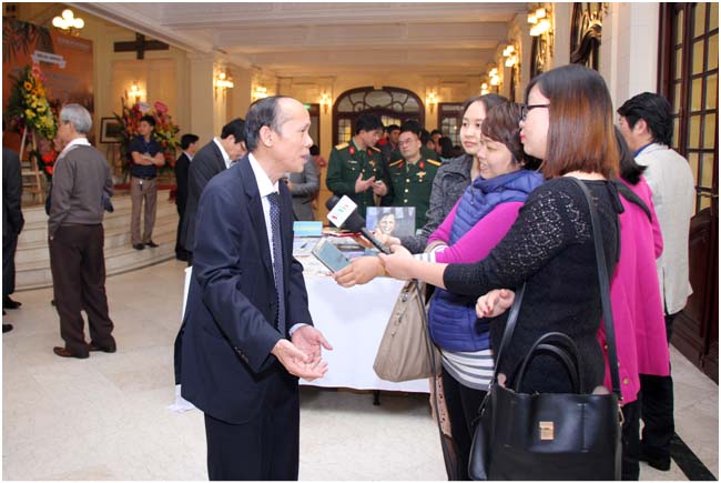 Trung tá Mai Thị Ngọc và các cán bộ Bảo tàng Lịch sử Quân sự Việt Nam thăm quan khu triển lãm sách
